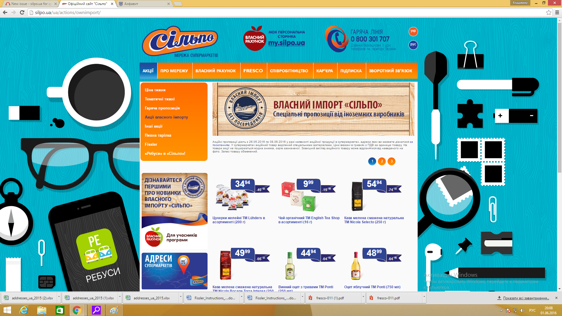 5) В самом низу страницы есть светящийся банер "Акцiї власного iмпорту"