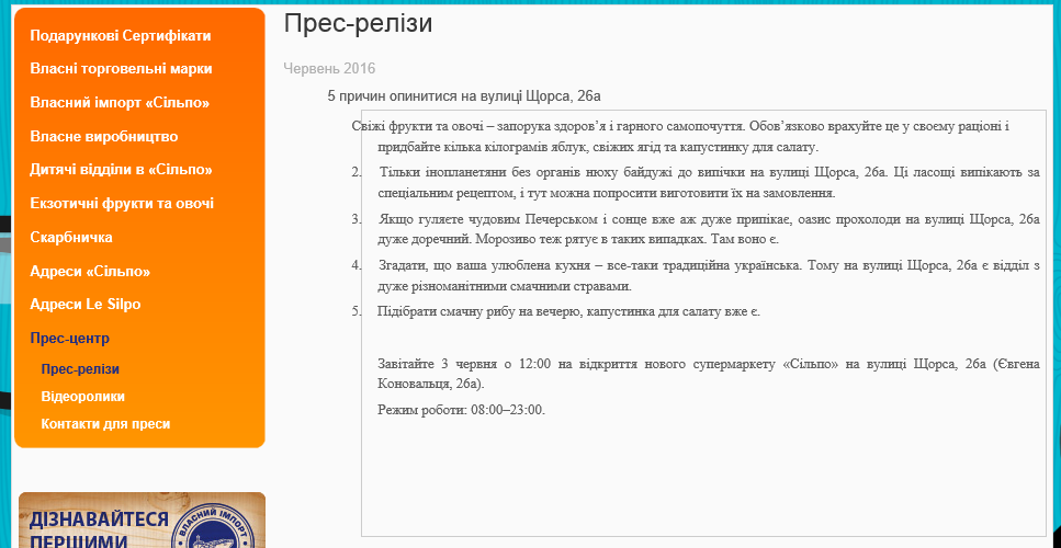 [FF] Смещение текста влево за рамку в статье "5 причин опинитися на вулиці Щорса, 26а", в опции "Про мережу" >> "Прес-релізи"