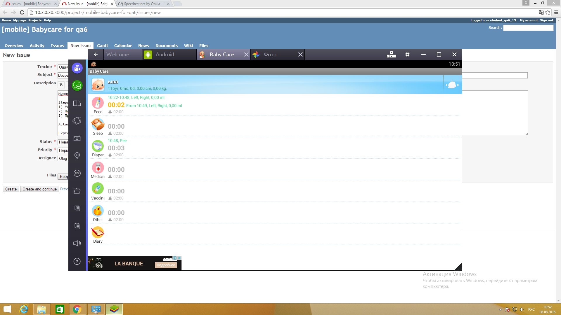 2) Переключившись на вкладку Android установить (перетащить) приложение BabyCare