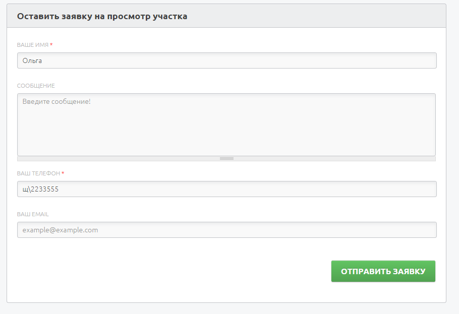Внизу есть поле "Оставить заявку на просмотр участка"