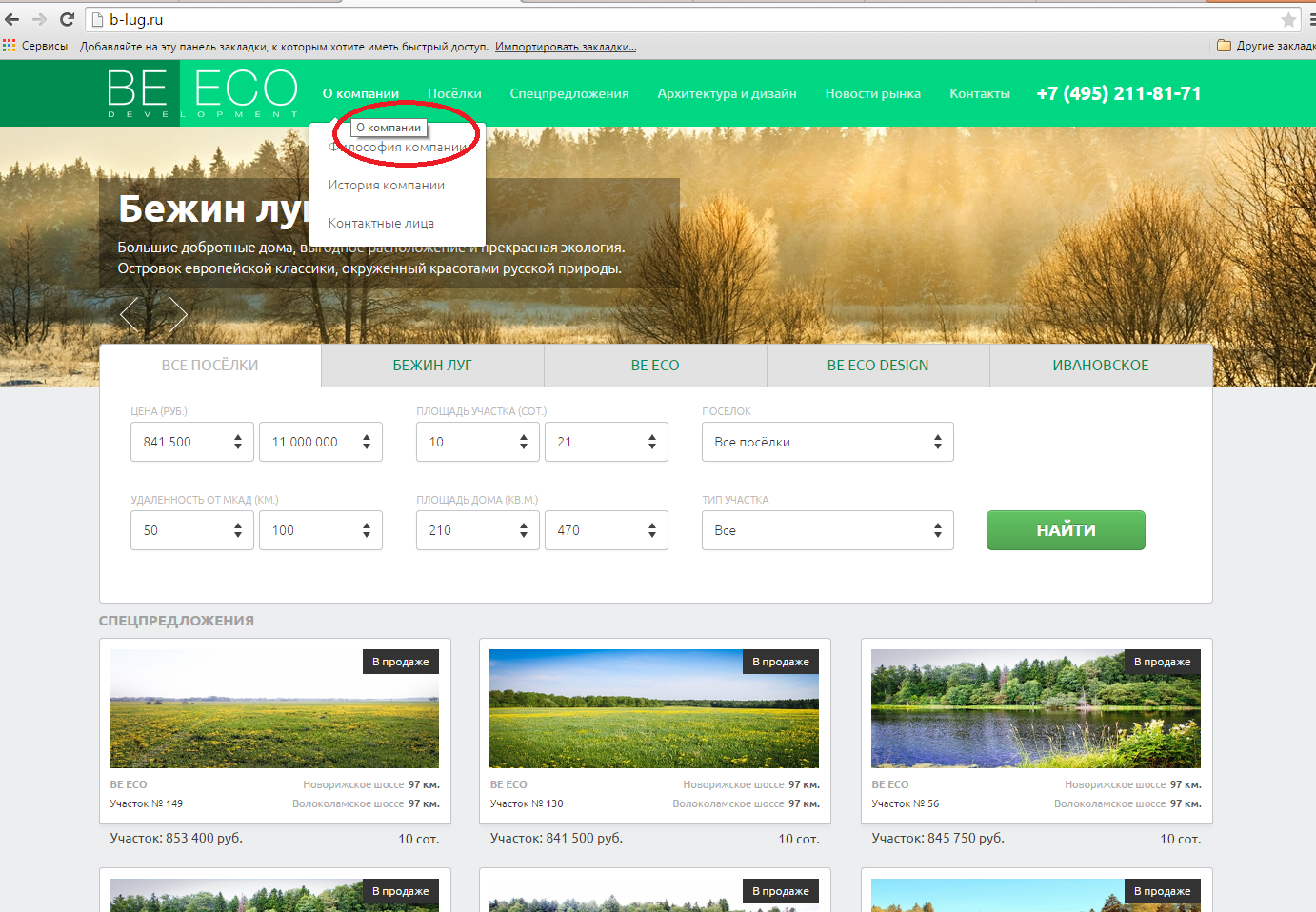 1. Открыть главную страницу http://b-lug.ru/.