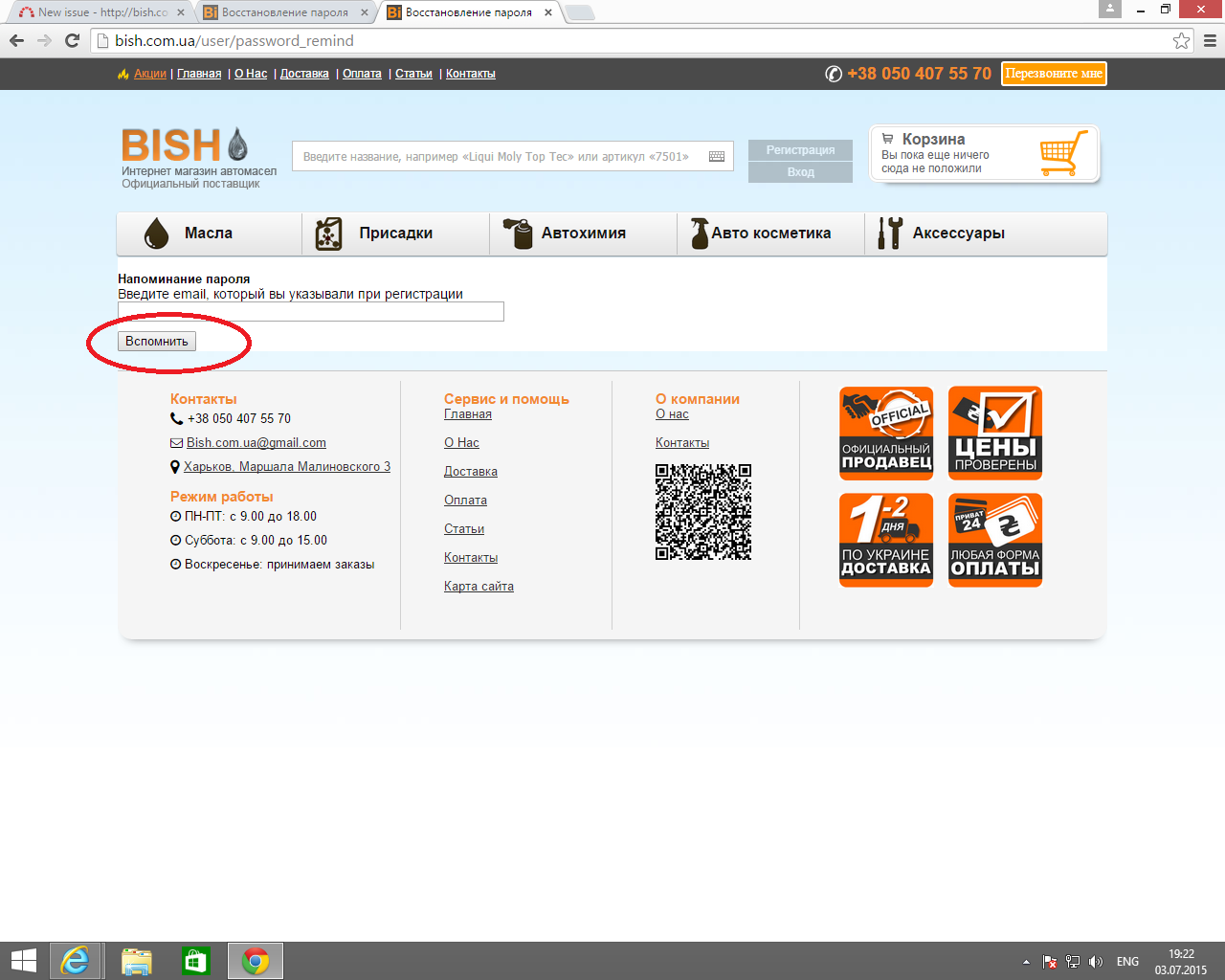 Некорректное название кнопки для восстановления пароля