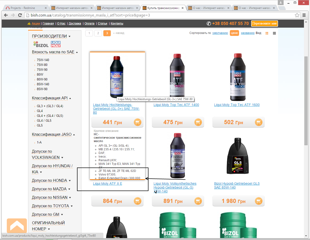 1. Заходим на http://bish.com.ua/catalog/transmissionnye_masla_i_atf?sort=price&page=3