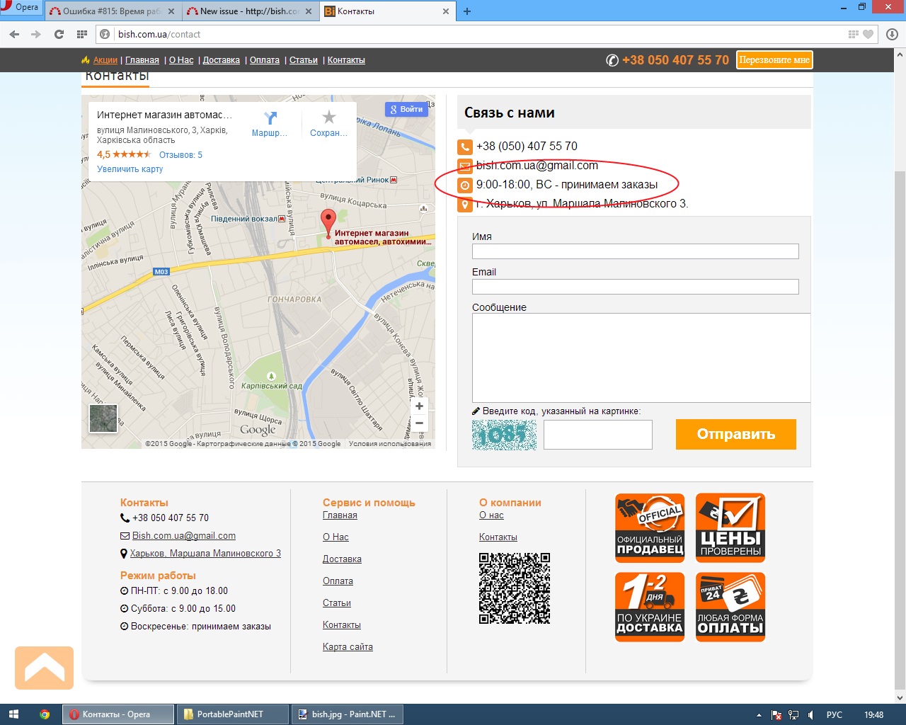 В разделе "контакты" недостаточно понятно указана информация времени работы магазина.