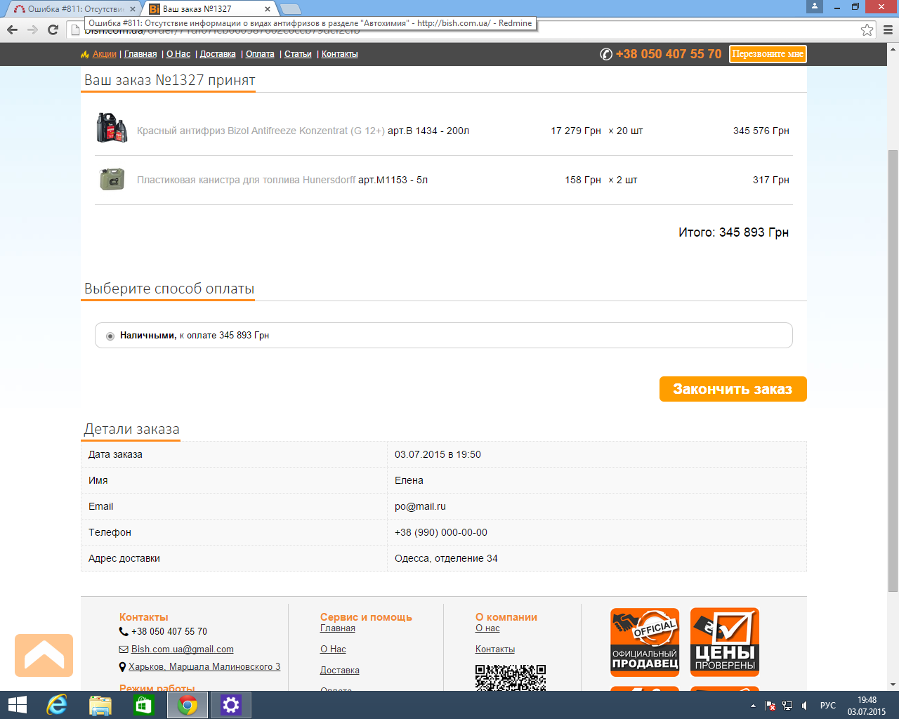 Отсутствие выбора способа оплаты товара при крупном заказе